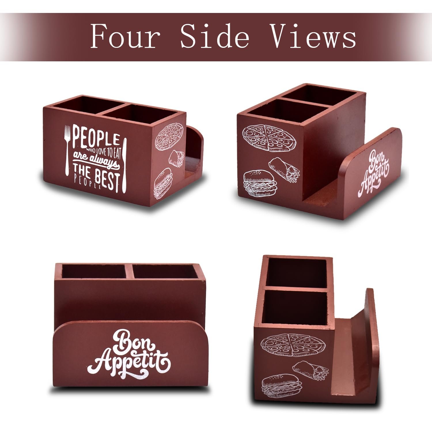 - STYLISH TABLE RACK – Set this caddy organiser on your dining table or kitchen table as a fashionable cutlery holders. It adds an elegant, straightforward touch to the countertop, kitchen table, dining room, patio, etc., and provides a decorative and practical solution for cluttered countertops and overflowing kitchen drawers.